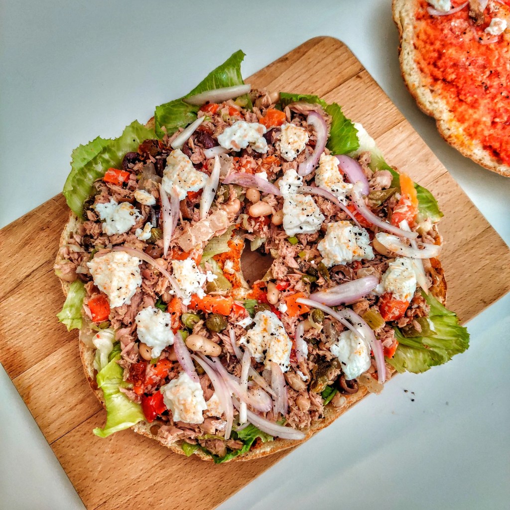 - Ħobż biż-żejt : d’épaisses tranches de pain garnies de sauce tomate, câpres, olives, ail, poivre noir et d’un filet d’huile d’olive. Du thon ou des anchois sont parfois ajoutés.