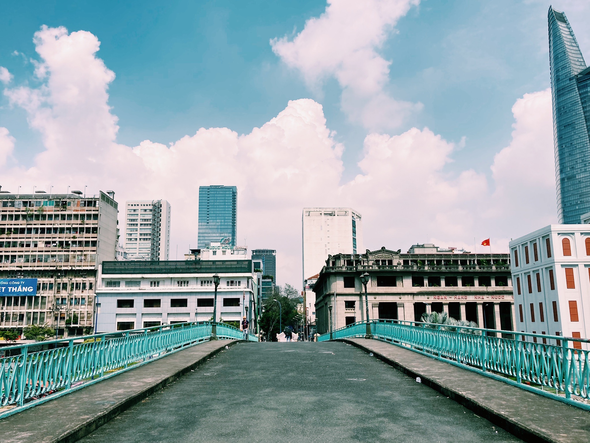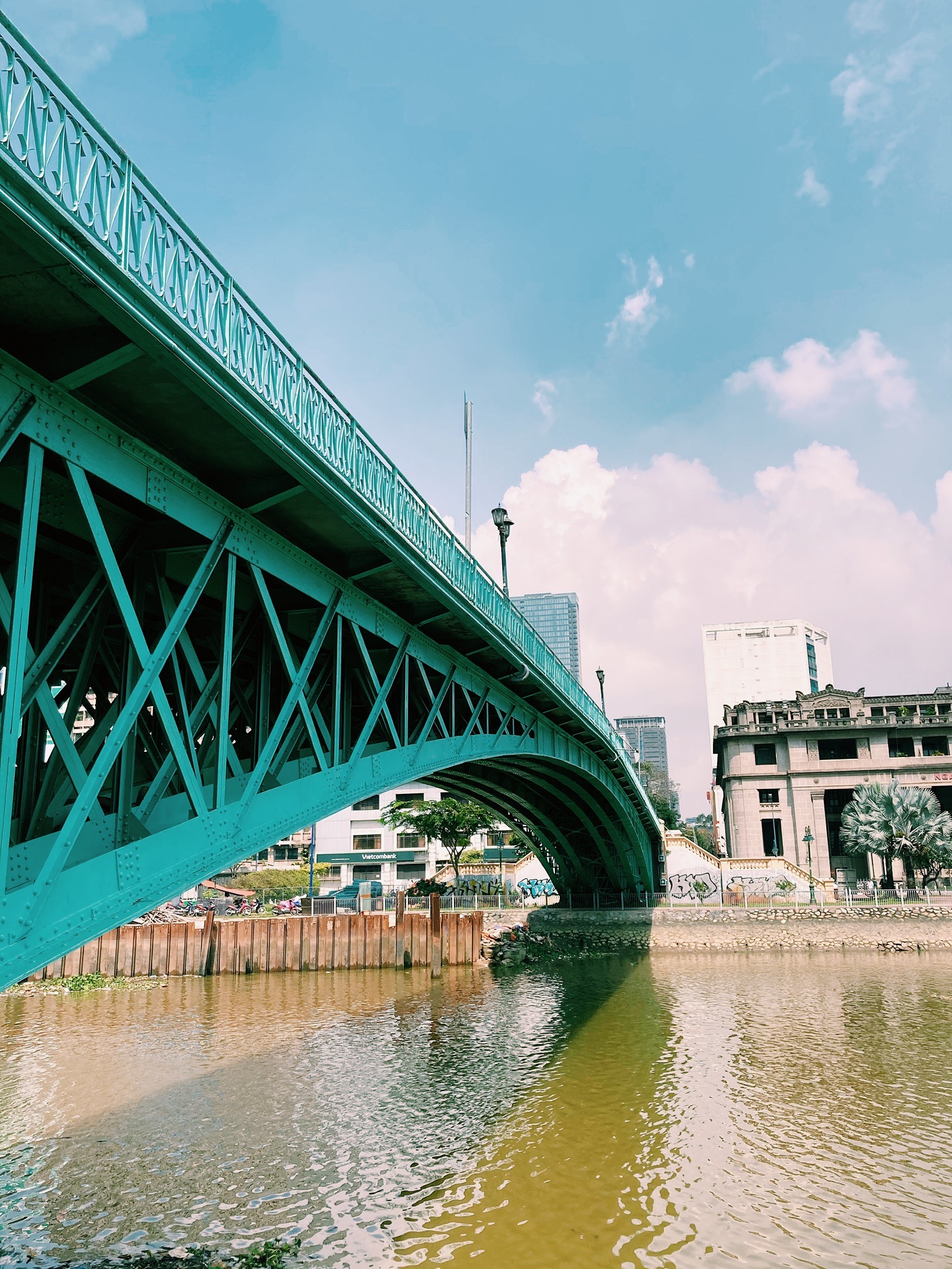 Le premier édifice qui frappe quand on arrive dans le District 4, c’est le fameux Rainbow Bridge, ou Green Bridge, qui traverse la rivière Bến Nghé entre les districts 1 et 4. Construit en 1894 par Gustave Eiffel, il servait à relier le centre-ville avec le siège de la Compagnie française des messageries maritimes. C’est aujourd’hui un pont iconique de la ville, où les jeunes amoureux saïgonnais aiment se balader, se prendre en selfie bien sûr, et également où les jeunes fiancés se font prendre en photo en habits de cérémonie avant leur mariage.