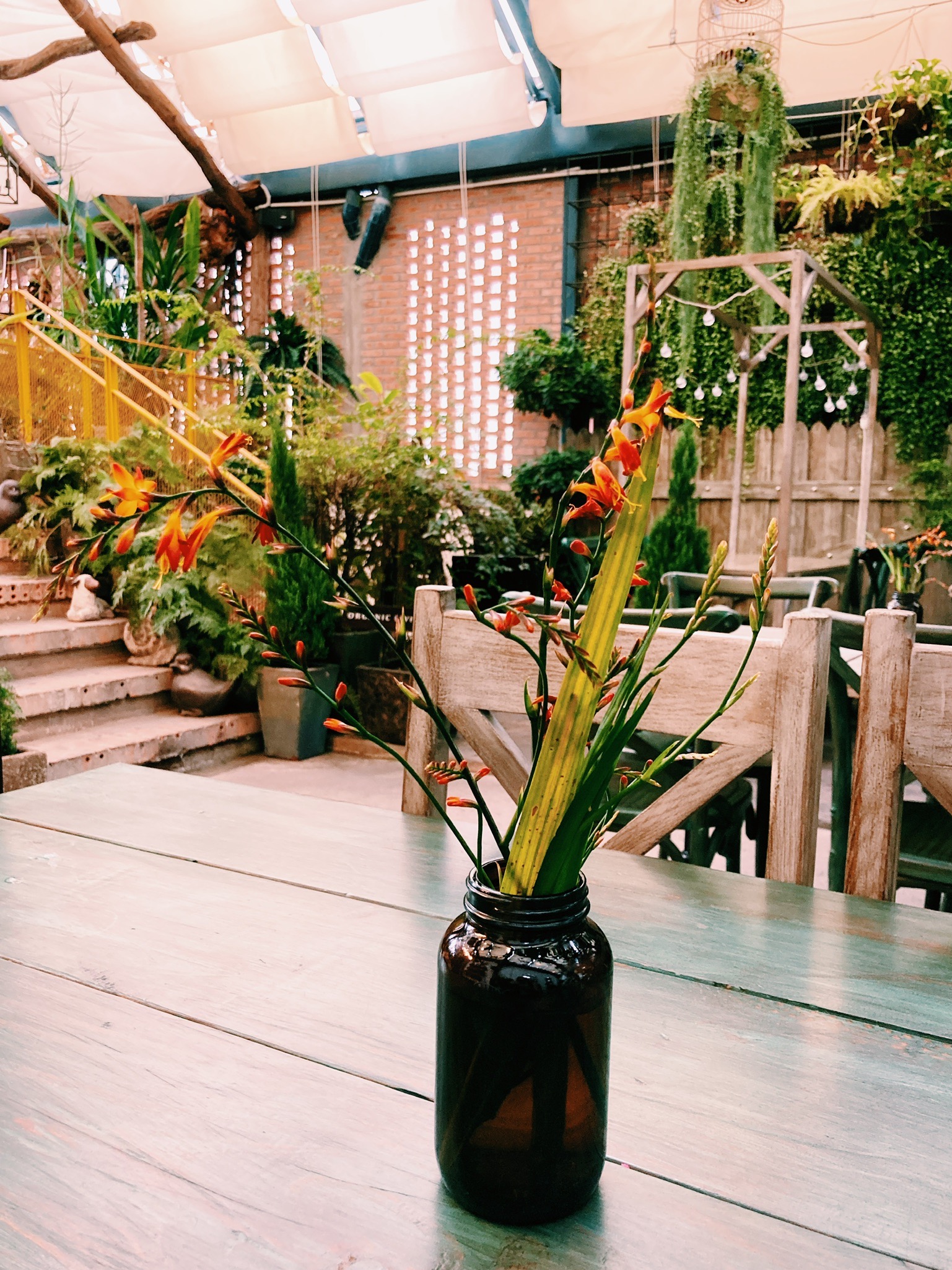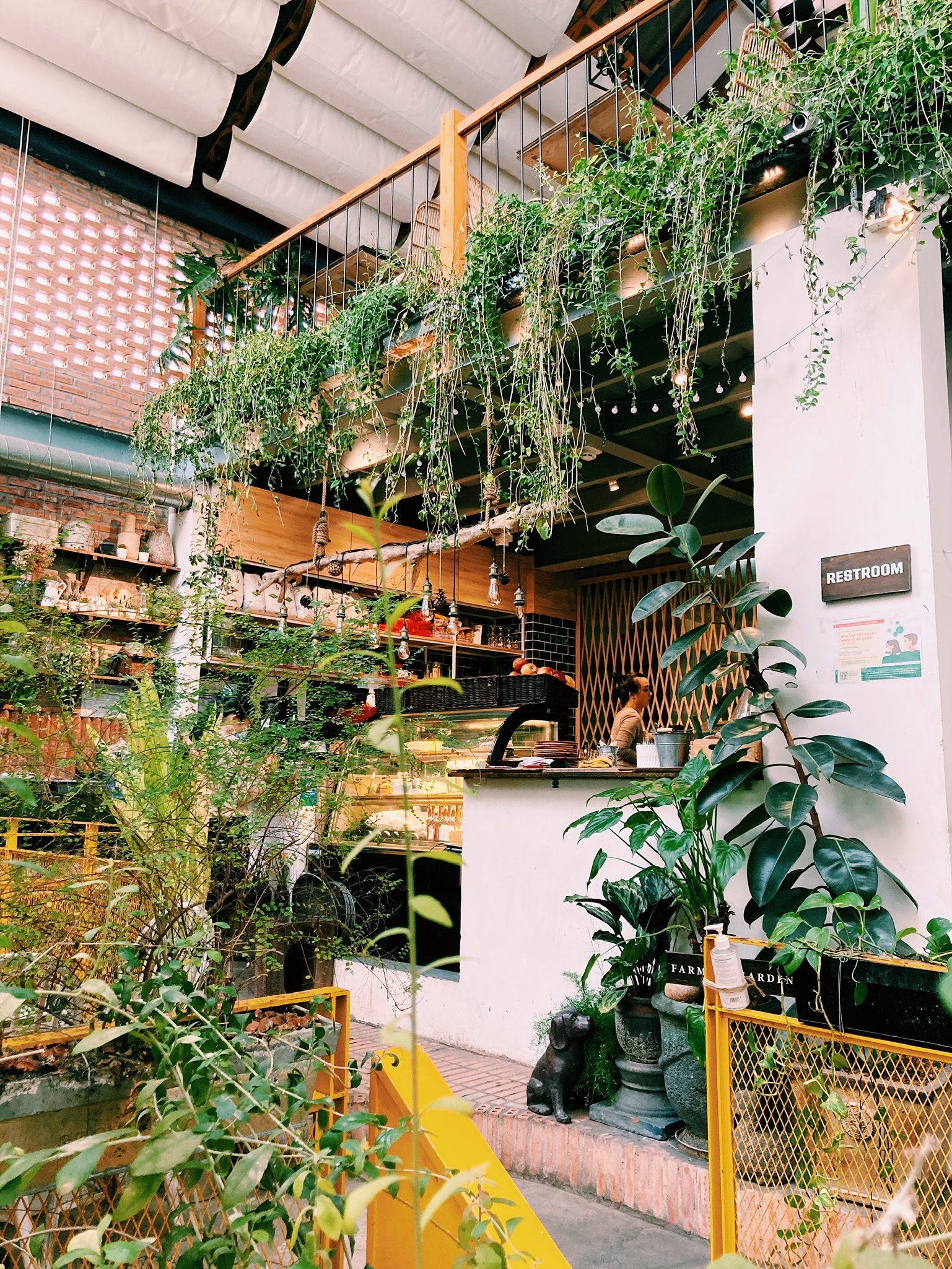 Farmer’s Market – Concept store sur trois étages, avec un supermarché au rez-de-chaussée, une jolie boutique de décoration et de produits naturels au premier étage, et un magnifique café/restaurant au dernier étage qui ressemble à une serre tropicale. L’ambiance est travaillée, avec des balançoires, des plantes et des fleurs suspendues un peu partout, de beaux matériaux (bois, fer…) pour un cadre intimiste, contemporain et verdoyant. Tout ce que j’aime !