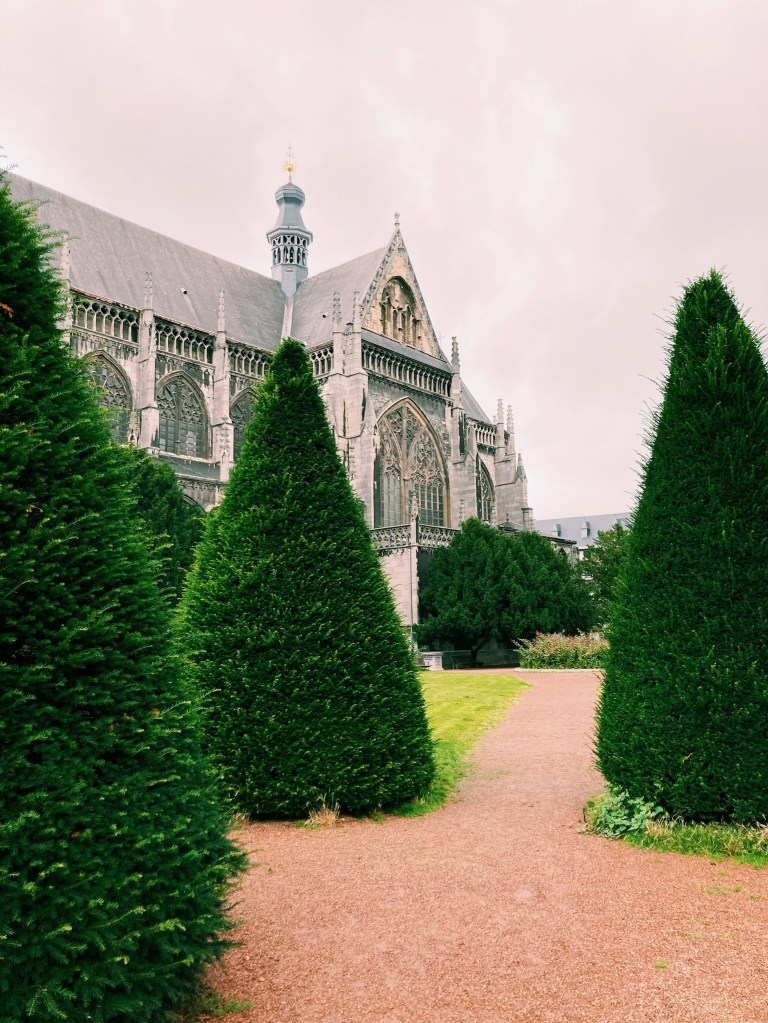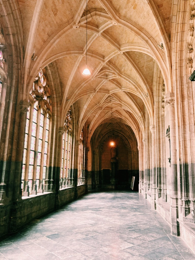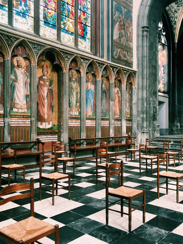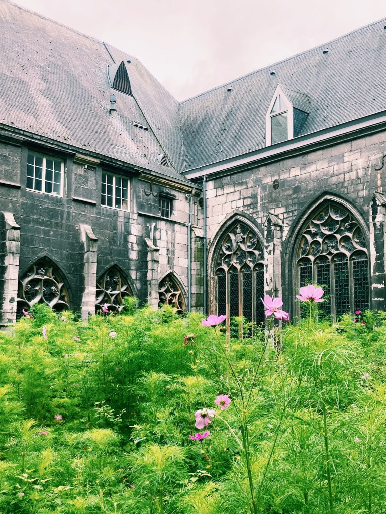 J’ai aussi beaucoup aimé la très belle cathédrale Saint-Paul de Liège qui fait partie des sept anciennes collégiales de Liège. J’ai particulièrement aimé le cloître et les vitraux de l’artiste Sud-coréen Kim En-Joong qui allie la calligraphie de son pays natal et l’art abstrait occidental.