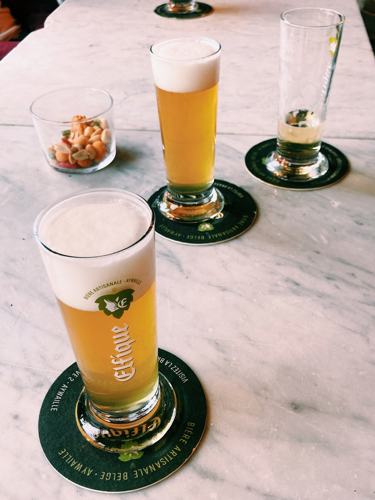 Mon amie qui y habite nous avait réservé une visite dominicale de la brasserie Elfique, située à Aywaille, à 30 minutes en voiture de Liège. Comme beaucoup d’autres, cette brasserie a été fortement touchée par les inondations qui ont frappé le pays en juillet dernier. Toutes les machines ont été impactées et ne peuvent plus être utilisées. L’équipe produit désormais dans d’autres brasseries, jusqu’au Luxembourg. On a quand même pu visiter les locaux et voir toutes les étapes de production de la bière, depuis le maltage des grains d’orge à la mise en bouteille. Très intéressant (même pour moi qui n’aime pas la bière) !