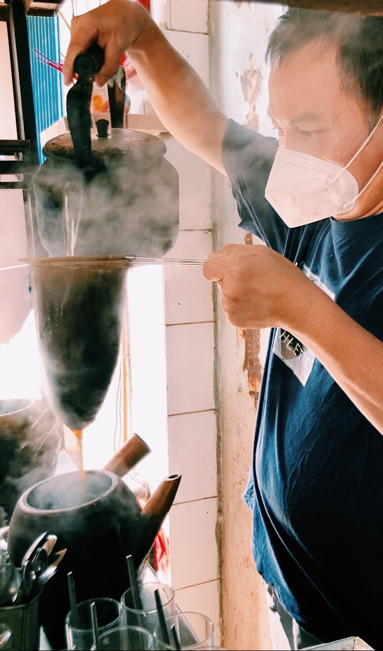 Bien connu des habitants du coin, le Café Ba Lù (193 D. Phùng Hung, Phuong 14, Quan 5) est l’un des plus anciens cafés de Saïgon. Les grains de cafés sont rôtis sur place avec du beurre et le café est servi à travers un filtre en chiffon. Le café est excellent et permet de faire le plein d’énergie avant de partir explorer le quartier !