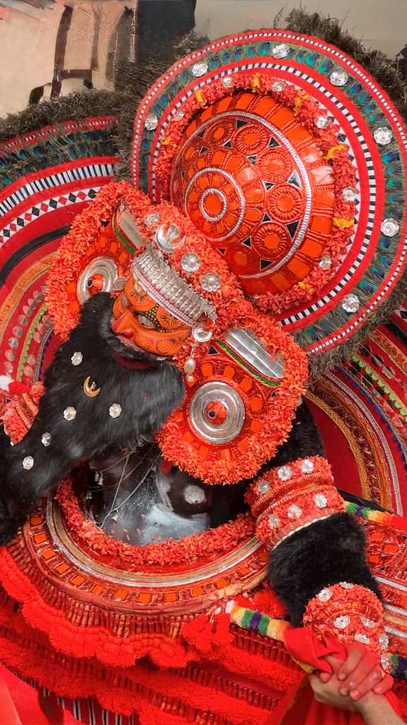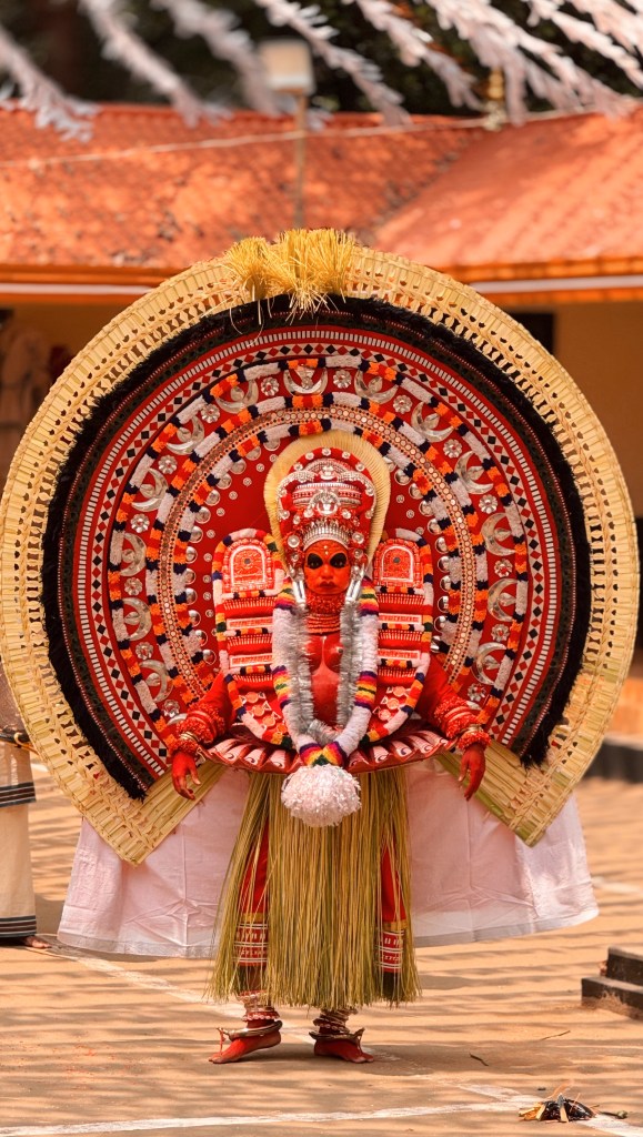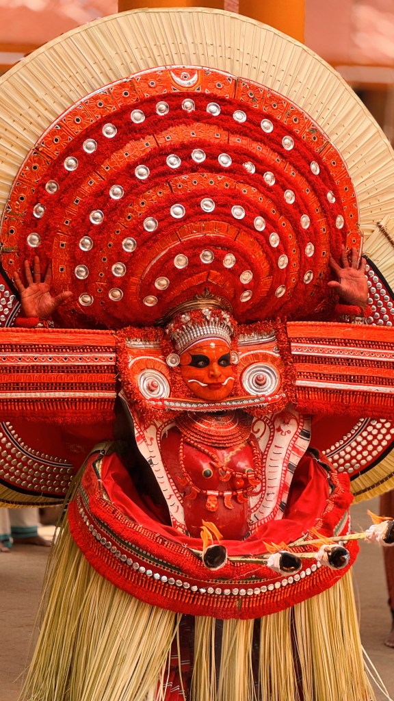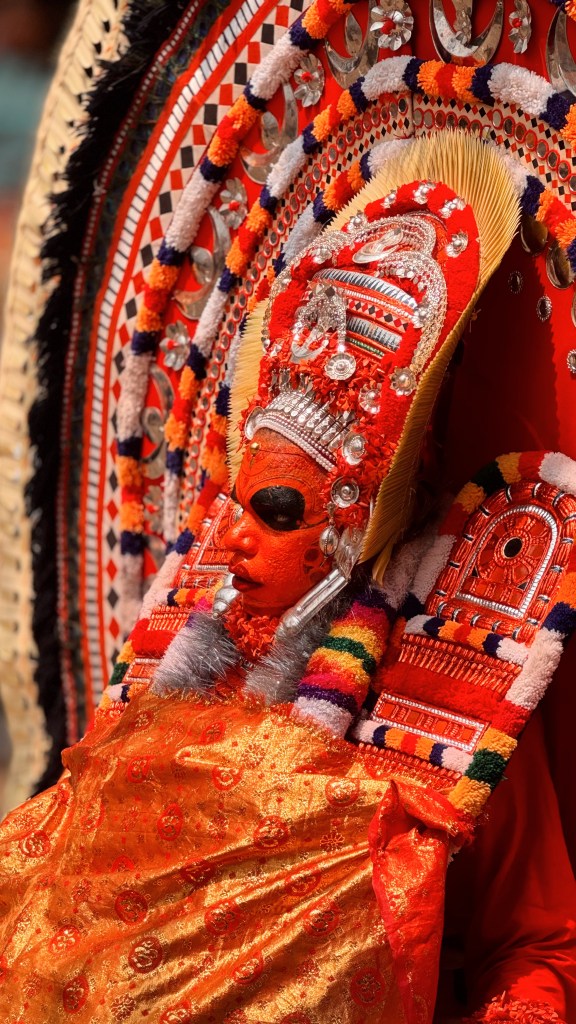 Le Theyyam est considéré comme pré-brahmanique, donc antérieur à l’hindouisme « classique ». Il est profondément lié aux cultes animistes, aux héros locaux divinisés, aux esprits de la forêt et aux figures féminines puissantes. C’est donc une tradition très ancienne, probablement vieille de plus de 1 000 ans.