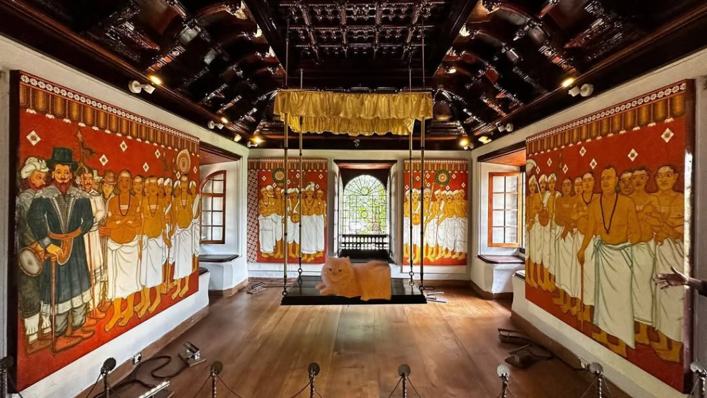 2. Le Palais Mattancherry – Aussi connu sous le nom de Dutch Palace, ce palais cache une fusion culturelle fascinante : construit par les Portugais en 1555, puis « pimpé » par les Hollandais, il a surtout servi de cadeau au Raja de Kochi. On y trouve des fresques murales hindoues parmi les plus belles d’Inde, avec des couleurs d’origine (ocre, vert, rouge) qui ont survécu aux siècles.
