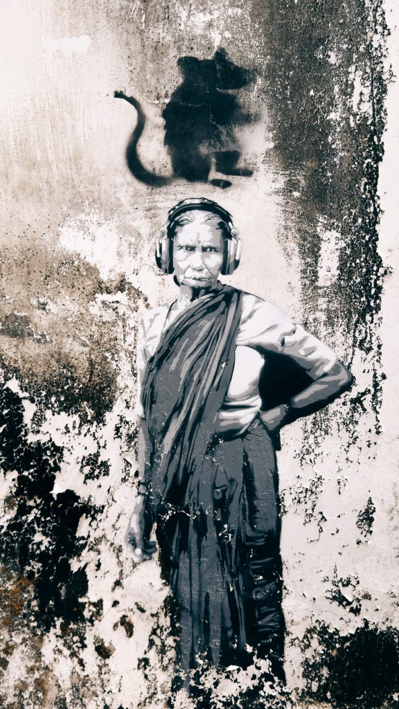 Cette explosion de couleurs doit beaucoup à la Biennale de Kochi-Muziris (l’édition 2025-2026 vient d’ailleurs de s’achever en beauté !), qui laisse derrière elle des pépites visuelles : collages, portraits hyperréalistes, messages politiques poignants (citons ici le graffeur anonyme Guesswho, le Banksy indien).